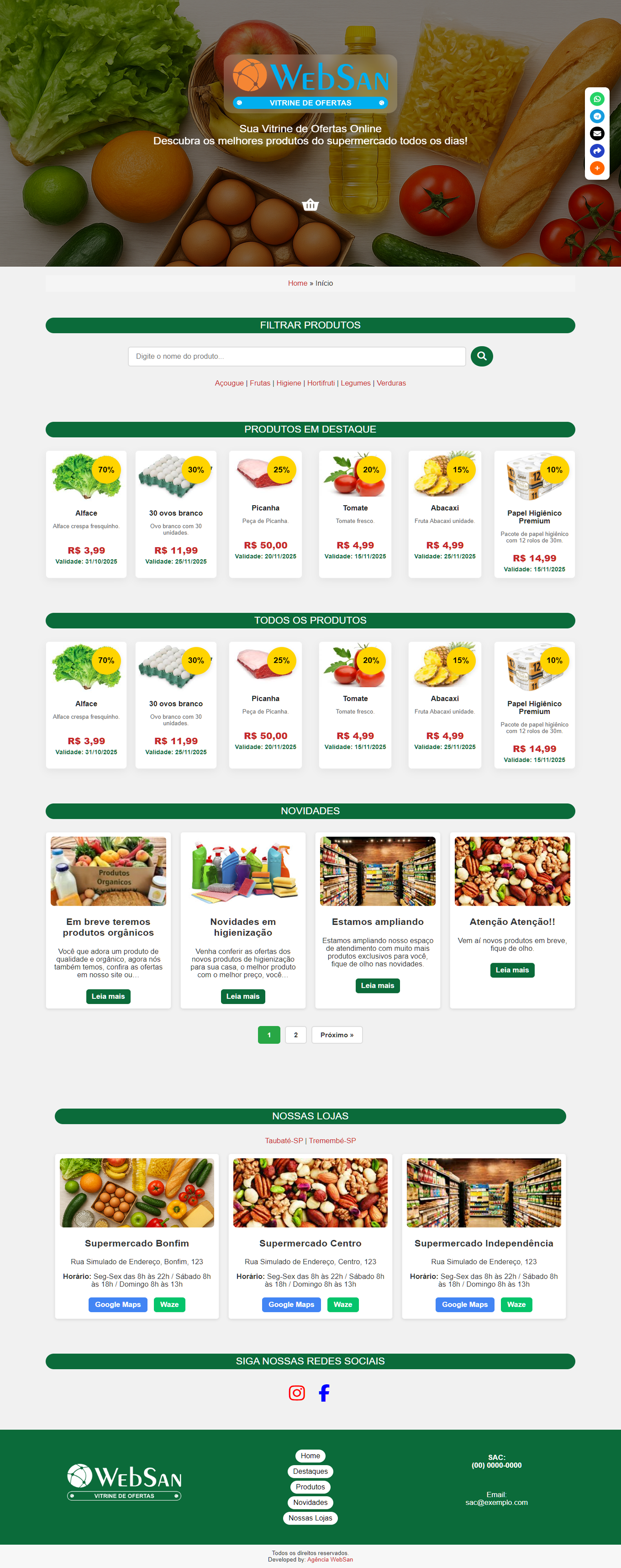 Em resumo: seu site gera confiança. Sua rede social gera engajamento. A sua Vitrine de Ofertas da WebSan gera movimento e vendas.